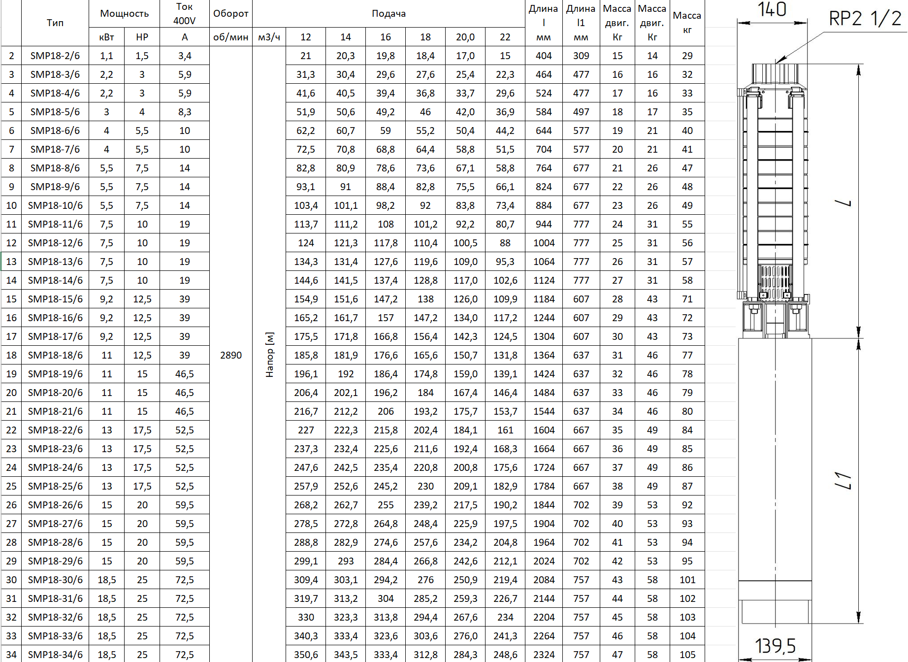 Паспорт (инструкция по эксплуатации) — пример: SMP(A) 18-13/6