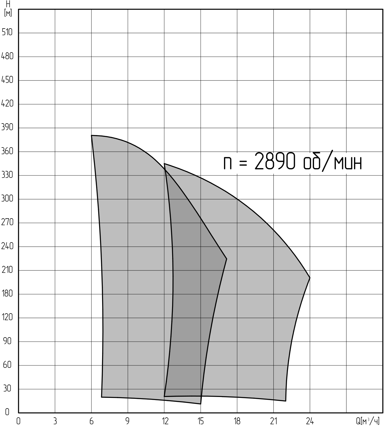 Ниже приведен диапазон характеристик для агрегатов SMP 6″ (n ≈ 2890 об/мин).