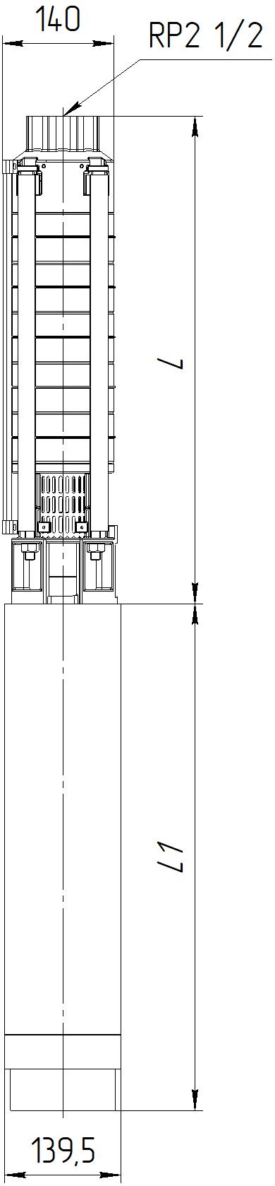 Выходной патрубок: внутренняя резьба Rp 2 1/2. Типовые габариты зависят от количества ступеней и комплектации.